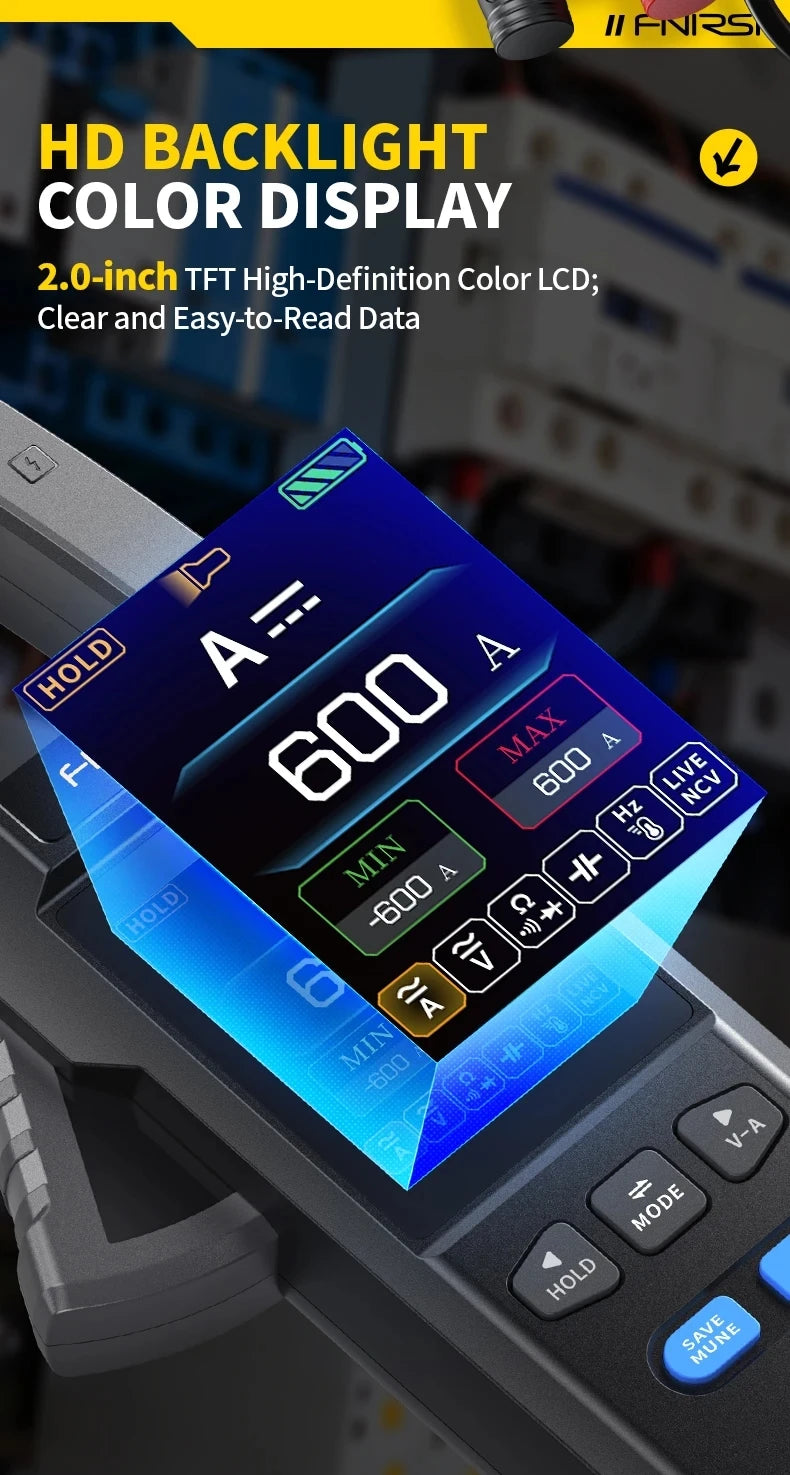 600A AC/DC Current | 750V Voltage | Color TFT Display | USB-C Rechargeable